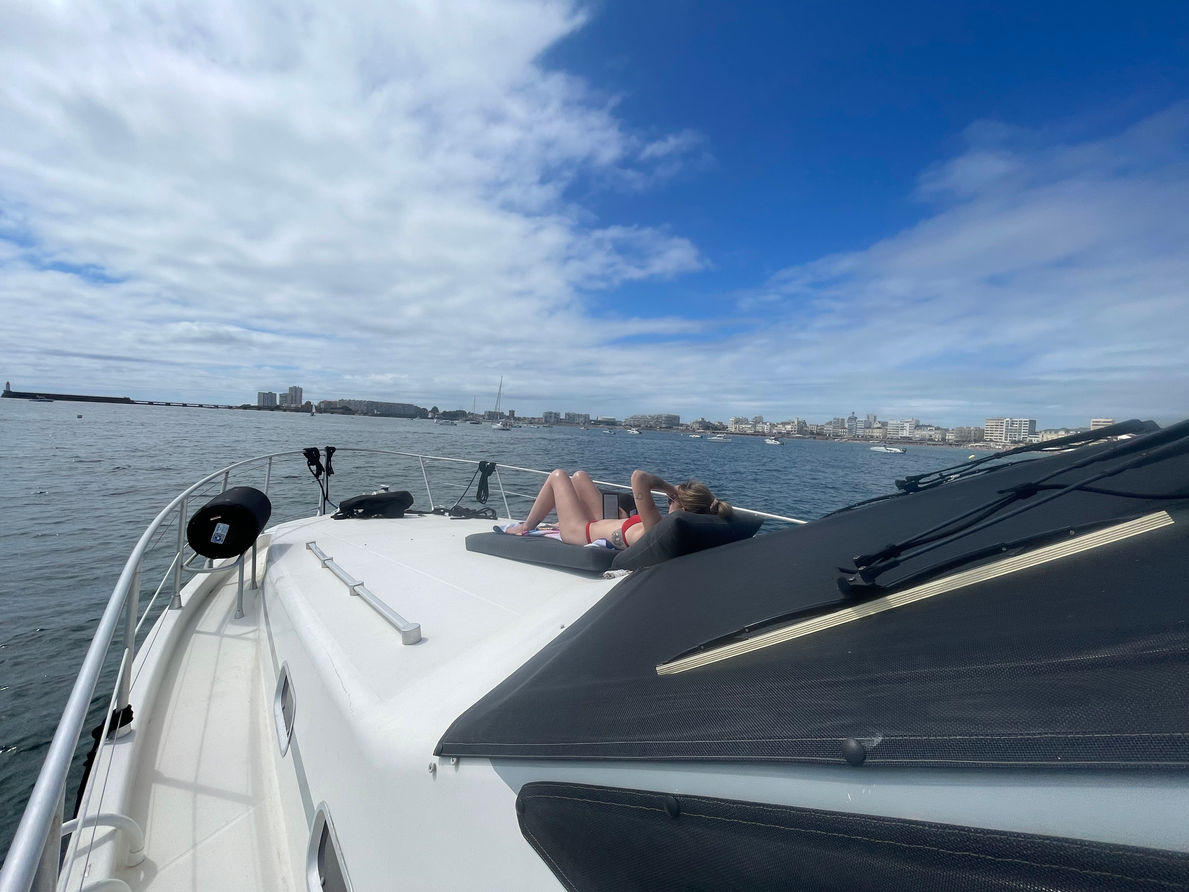 2 salons : un salon intérieur avec télévision (la carrée) et un salon extérieur situé à l'arrière du bateau (cockpit), entièrement protégé par un taud, ainsi qu'un flybridge à l'étage offrant une vue imprenable sur La Chaume.
